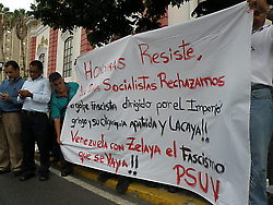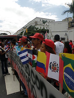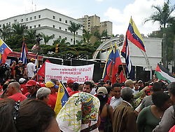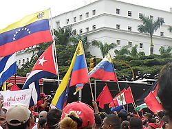 Palacio de Miraflores, Caracas 28 de Junio- Cientos de venezolanos se han congregado a lo largo de la avenida Urdaneta y en los alrededores del Palacio Presidencial de Miraflores, en Caracas, para expresar su repudio al golpe de Estado perpetrado en Honduras y reiterar su apoyo irrestricto al presidente de esta nación, Manuel Zelaya, quien fue sacado a la fuerza de su país.