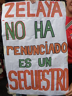 28 de junio de 2009.- Al conocer la lectura de la falsa carta sobre su renuncia, Manuel Zelaya, Presidente Constitucional de Honduras, quien vive en estos momentos un Golpe de Estado en su contra, desmintió categóricamente que hubiese renunciado y denunció que la carta es falsa añadiendo a esto que "nunca he renunciado y nunca haré uso de ese mecanismo", refiriéndose a la renuncia como mecanismo de salida del cargo para el que fue electo años atrás y descartó solicitud de asilo en cualquier país.